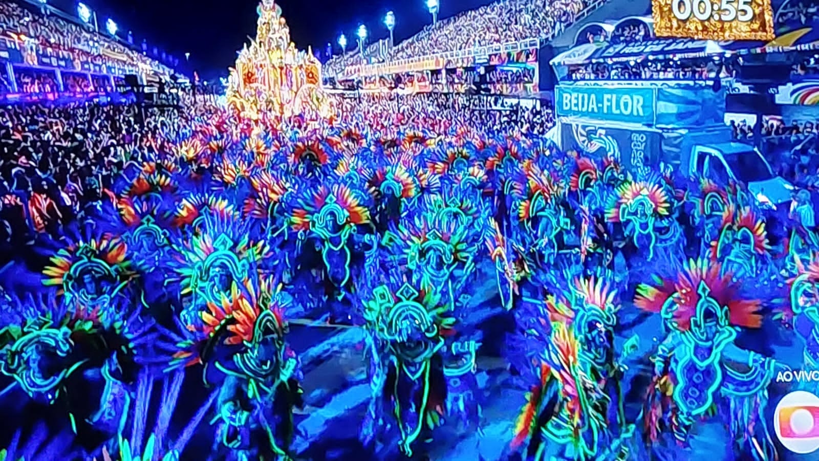O sambódromo lotado cantava e aplaudia, eu era apenas um entre os 3.500 componentes da Beija-Flor. Cheguei a pensar que todas as palmas eram para mim, bela e louca ilusão explodiu meu coração, chorei de emoção…